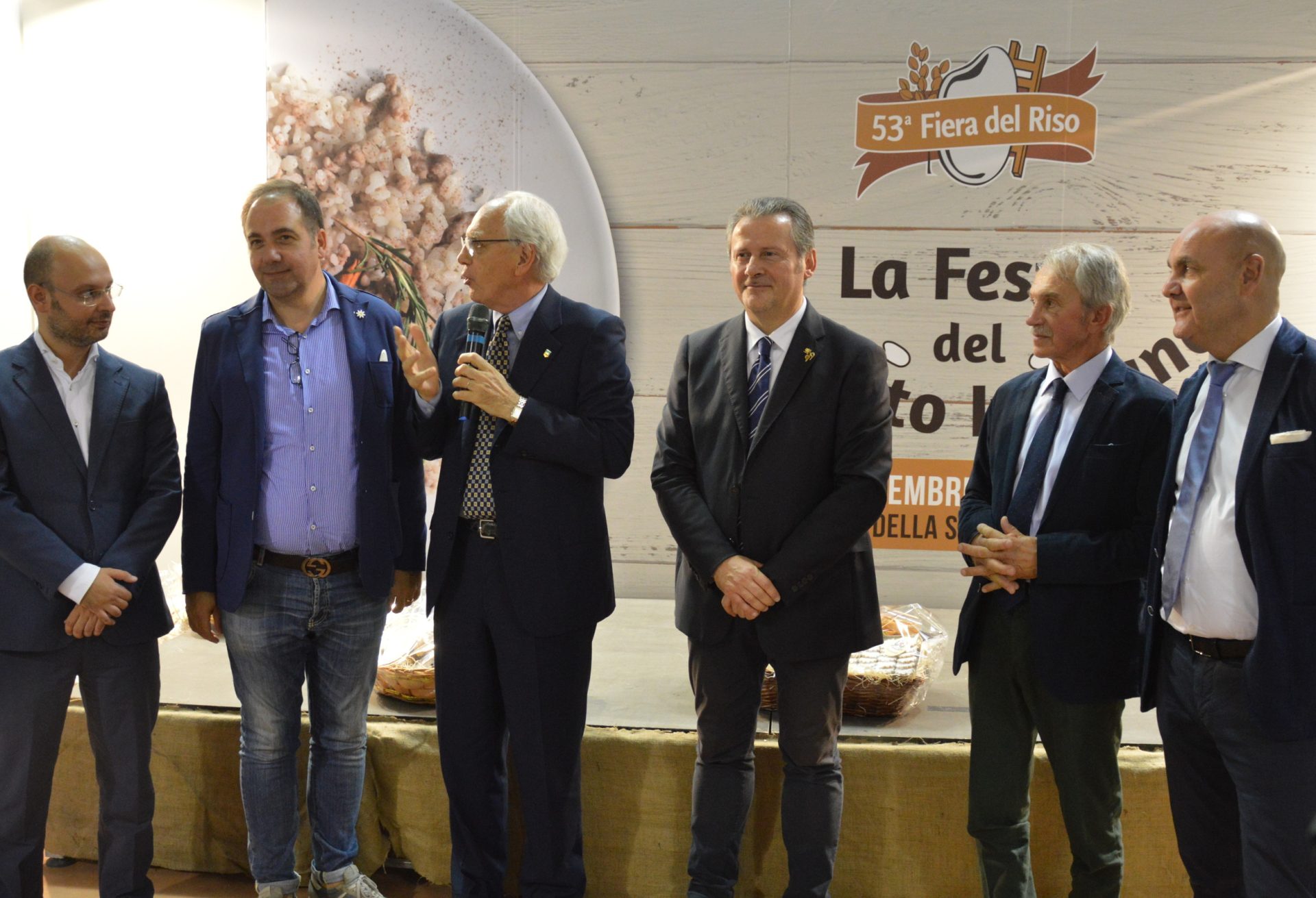 A consegnargli l’onorificenza, il presidente del consorzio di tutela del riso Nano Vialone Veronese Igp, Renato Leoni, il sindaco di Isola della Scala, Stefano Canazza, il vicesindaco Michele Gruppo e l’amministratore unico di Ente Fiera, Michele Filippi.