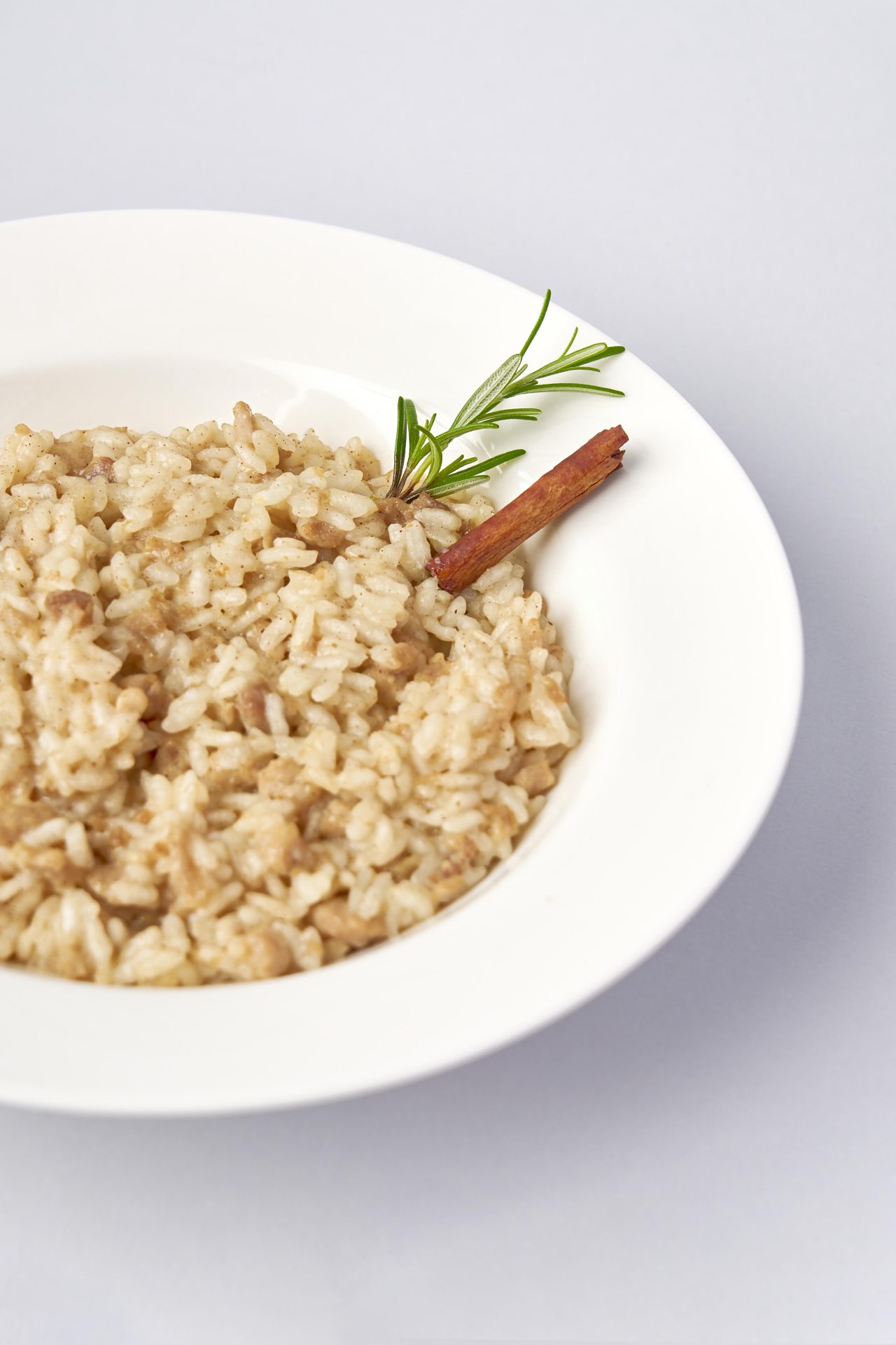 Completare il risotto all’Isolana con il formaggio profumato alla cannella.